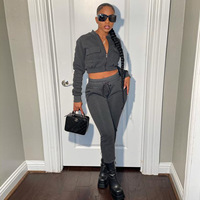 Bộ Hai Mảnh Tay Dài Màu Trơn Logo Tùy Chỉnh Trang Phục Thể Thao Khóa Kéo Cổ Tròn Bộ Đồ Tập Thể Dục Chạy Bộ 2 Món Có Túi